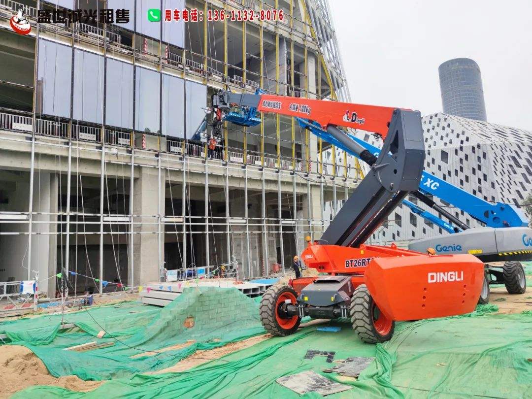 大吸力玻璃吸盤車讓玻璃安裝變得簡單高效,其最大載重1200kg,工作高度可達26米,玻璃幕墻的安裝搬運,只需將玻璃在下方吸住后,利用機械臂將其提升,便可送達指定高度和位置,操作吸盤旋轉微調安裝角度,轉臺回轉角度360°無限制,更可精確到毫米級別,從吸到放整個過程一步到位,施工人員配合載人高空車操作吸盤車也十分方便,工作效率更高。